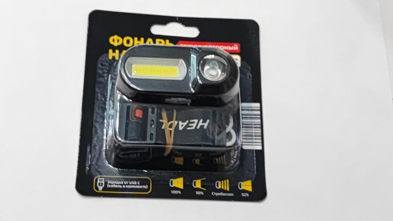 Фонарь налобный "7 режимов" на аккумуляторе 18650 емкостью 1200мАч С кабелем Type С для зарядки